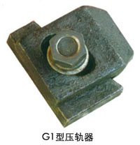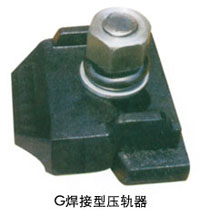 TGL轨道固定件 1、采用正反螺母固定,提高轨道固定件的防松动,保证吊车工作稳定,减少维修数量。 2、采用螺钉调节间距,使轨距调节变的简单可靠,也为轨道调直提供条件。 3、其他参照A型焊接型压轨器。