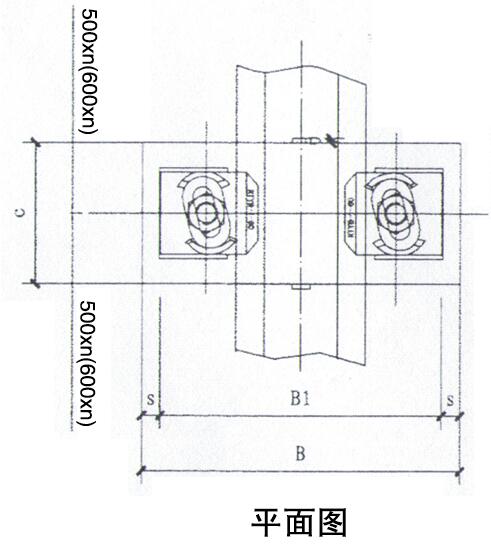 C值大于250mm,根据实际情况可做调整。当起重量较大或条件许可时可通铺设。B值详见施工图。 |
