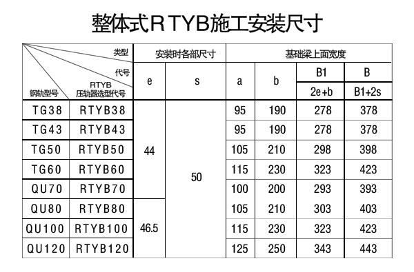3、加强整体式 RTYB 压轨器安装尺寸参照整体式 RTYB 压轨器尺寸。