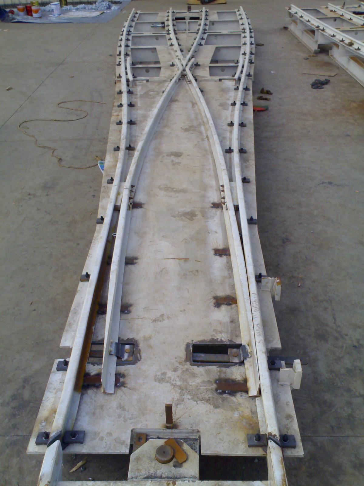 解决道岔有害空间的根本之道,当然是消灭有害空间。既然普通道岔做不到,就必须研制特殊道岔--活动心轨道岔轨道用对称道岔特点活动心轨主要的特点是辙叉心轨可以扳动。当我们要开通某一方向的股道时,活动心轨的辙叉心轨就与开通方向一致的翼轨密贴,与另一翼轨分开,这样一来,普通道岔的有害空间就不存在了。实践证明,消灭了道岔有害空间,行车更加平稳,过岔速度限制较小,因而特别适合运量大,需要开行高速列车的线路使用。